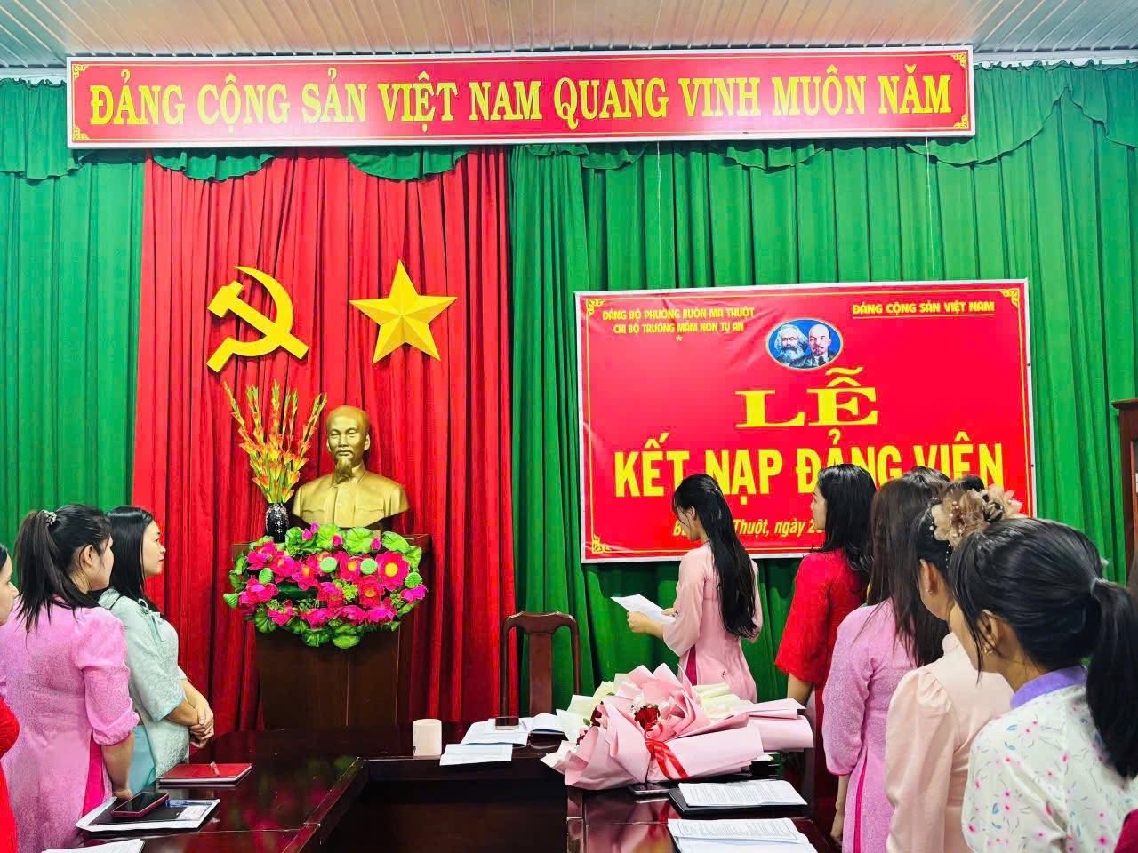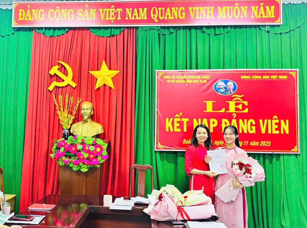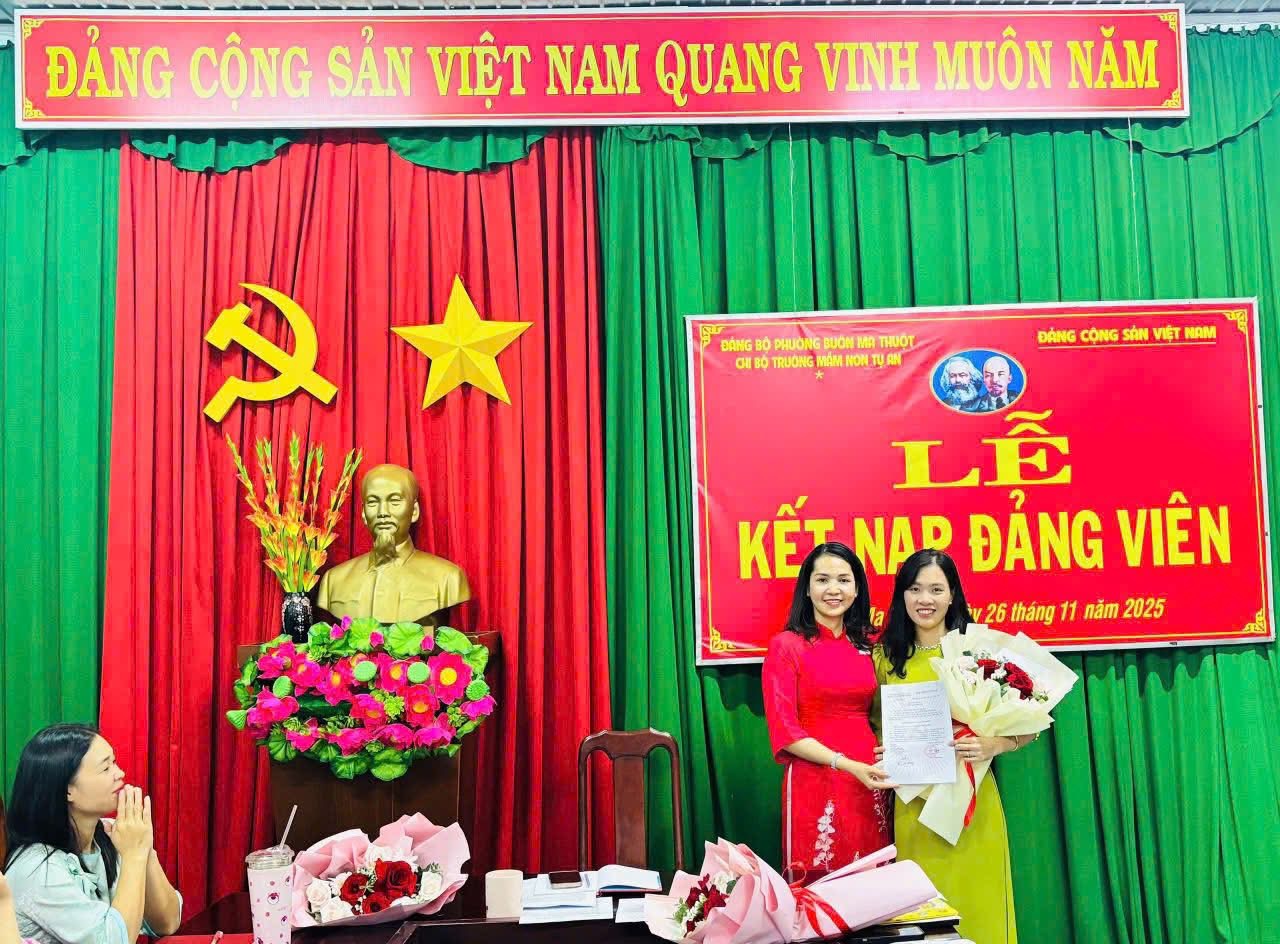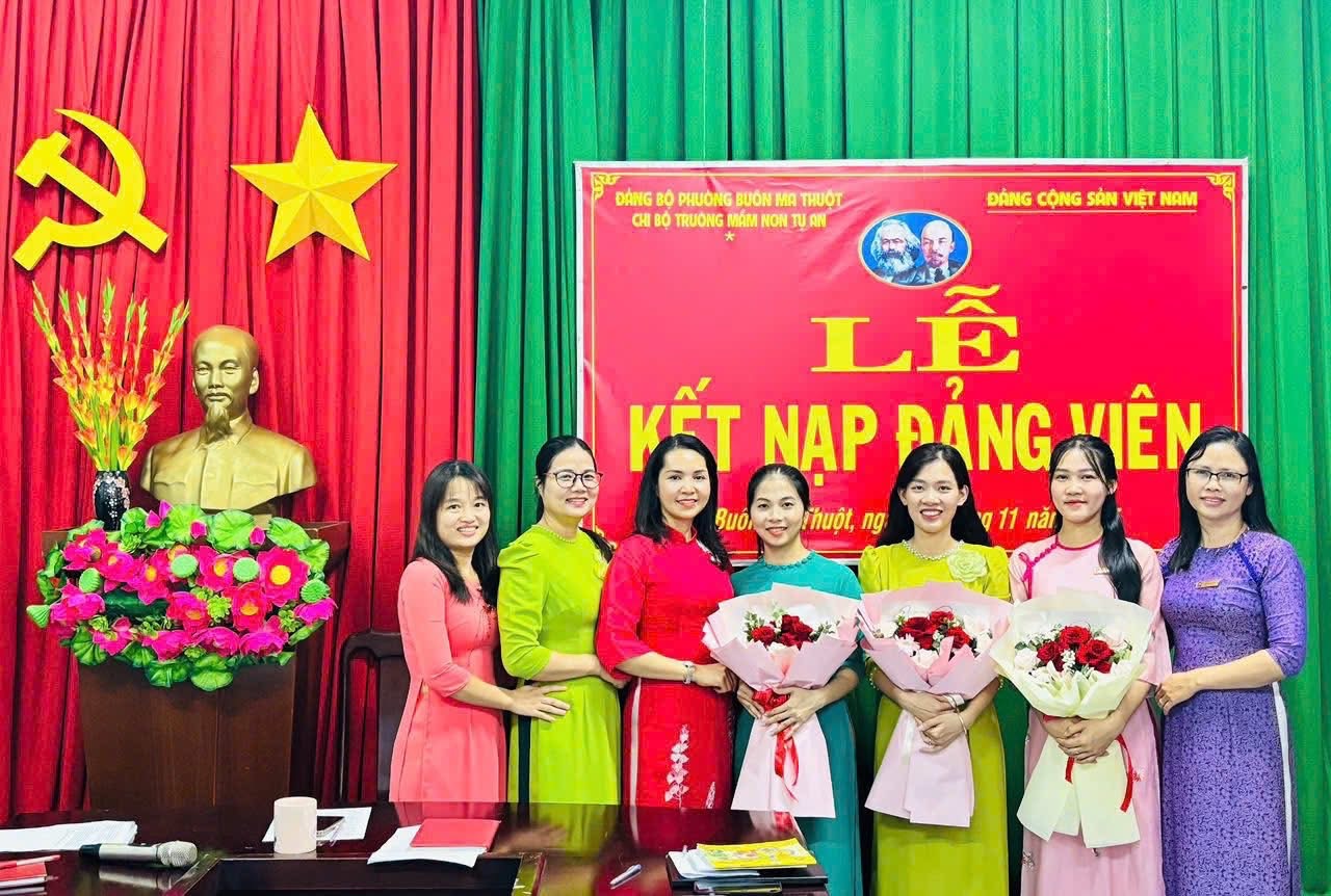 🎉 LỄ KẾT NẠP ĐẢNG VIÊN MỚI 🎉 Chi bộ Trường Mầm non Tự An hôm nay long trọng tổ chức Lễ kết nạp Đảng viên mới cho 3 đồng chí: ✨ Phạm Thị Thanh Dung ✨ Hoàng Thị Sim ✨ Ngô Thị Lan Hương Buổi lễ diễn ra trang nghiêm, đúng quy định, thể hiện sự quan tâm của Chi bộ trong công tác xây dựng, phát triển Đảng. Từ hôm nay, chi bộ có thêm những nhân tố mới, đầy nhiệt huyết, trách nhiệm và quyết tâm cống hiến cho tập thể. Xin chúc mừng các đồng chí đã vinh dự đứng vào hàng ngũ của Đảng Cộng sản Việt Nam. Kính chúc các đồng chí luôn giữ vững lập trường, rèn luyện phẩm chất đạo đức, phát huy năng lực trong mọi nhiệm vụ được giao. 🇻🇳✨
